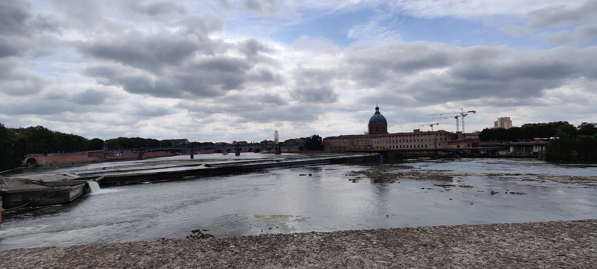 Les bâtiments des moulins du bazacle, surpomblés de grues